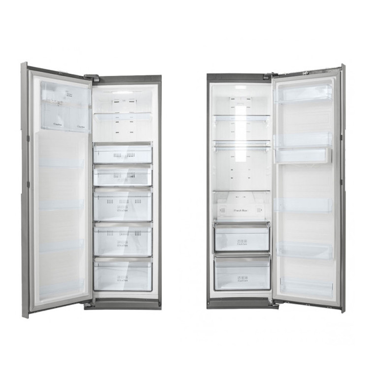 ابعاد مناسب، طراحی زیبا و جادار: گنجایش این یخچال برابر با 383 لیتر و گنجایش فریزر آن برابر با 290 لیتر است. در قسمت داخلی این دستگاه، کشو و طبقات متعددی قرار گرفته که به راحتی میتوانید مواد غذایی مختلفی را در آن قرار داده و نگران کمبود جا نباشید. برای اینکه بتوانید این یخچال را در آشپزخانه خود داشته باشید، باید فضایی خالی با ارتفاع تقریبی 180 سانتیمتر، عرض 60 سانتی متر و عمق 66 سانتی متر را در نظر بگیرید. این محصول در بخش یخچال شامل 5 طبقه و 2 کشو برای نگهداری میوهها و سبزیجان بوده و در بخش فریزر نیز شامل 5 کشوی شیشهای و 2 طبقه است که به خوبی امکان چیدمان و نگهداری منظم مواد غذایی را برای شما فراهم میکند. همچنین در قسمت داخلی درب یخچال نیز طبقات شیشهای تعبیه شده که میتوانید از آن برای نگهداری بطریها، سسها، تخم مرغ و … استفاده کنید.