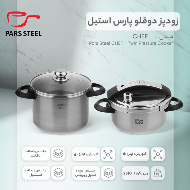 زودپز دوقلو پارس استیل مدل شف گنجایش 4 و 6 لیتری